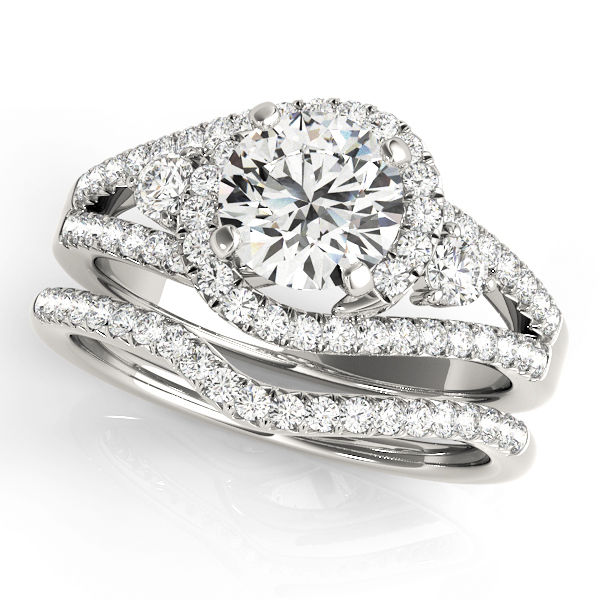 Multi Row Bypass Round Engagement Ring & Wedding Band Set